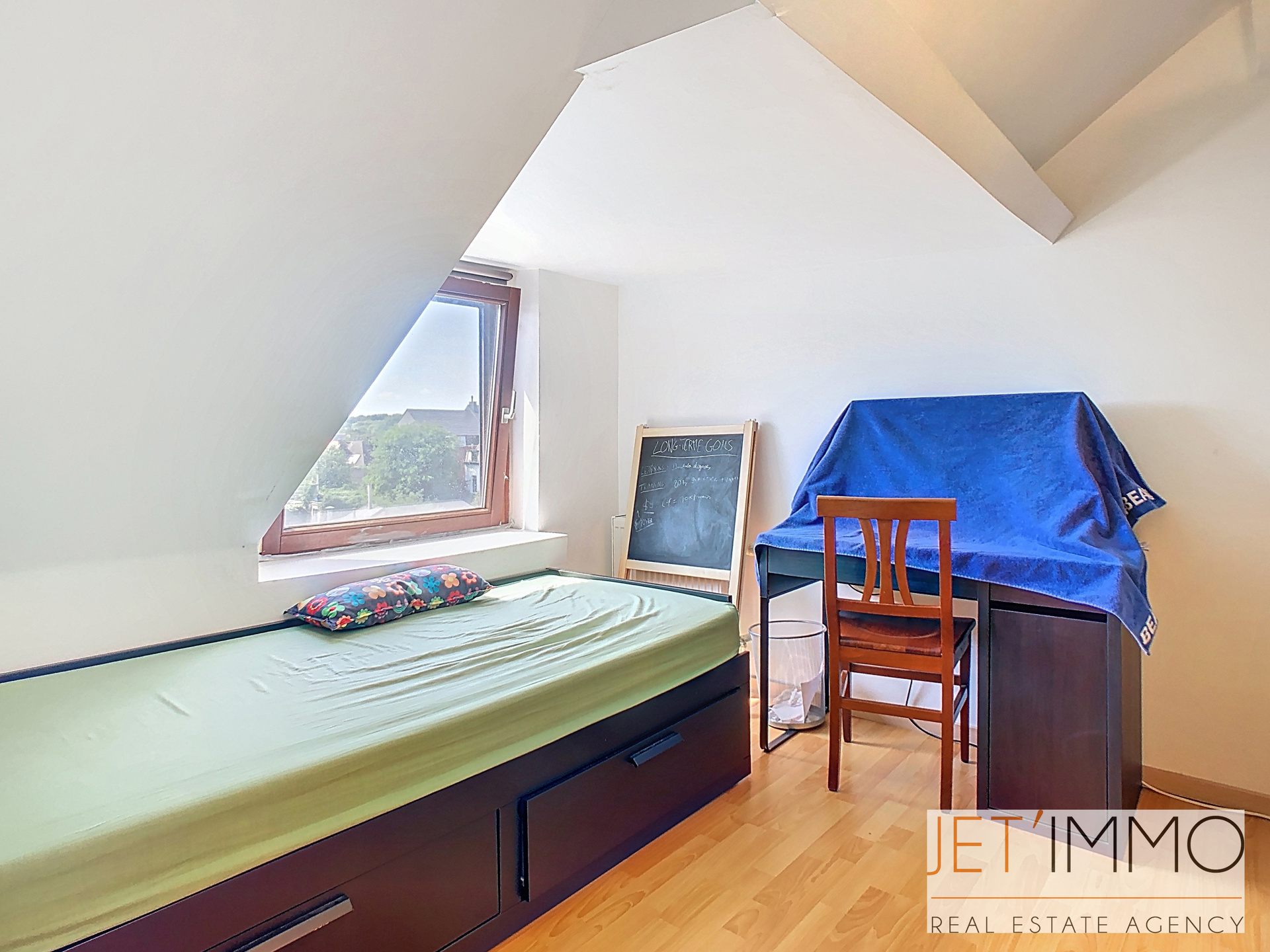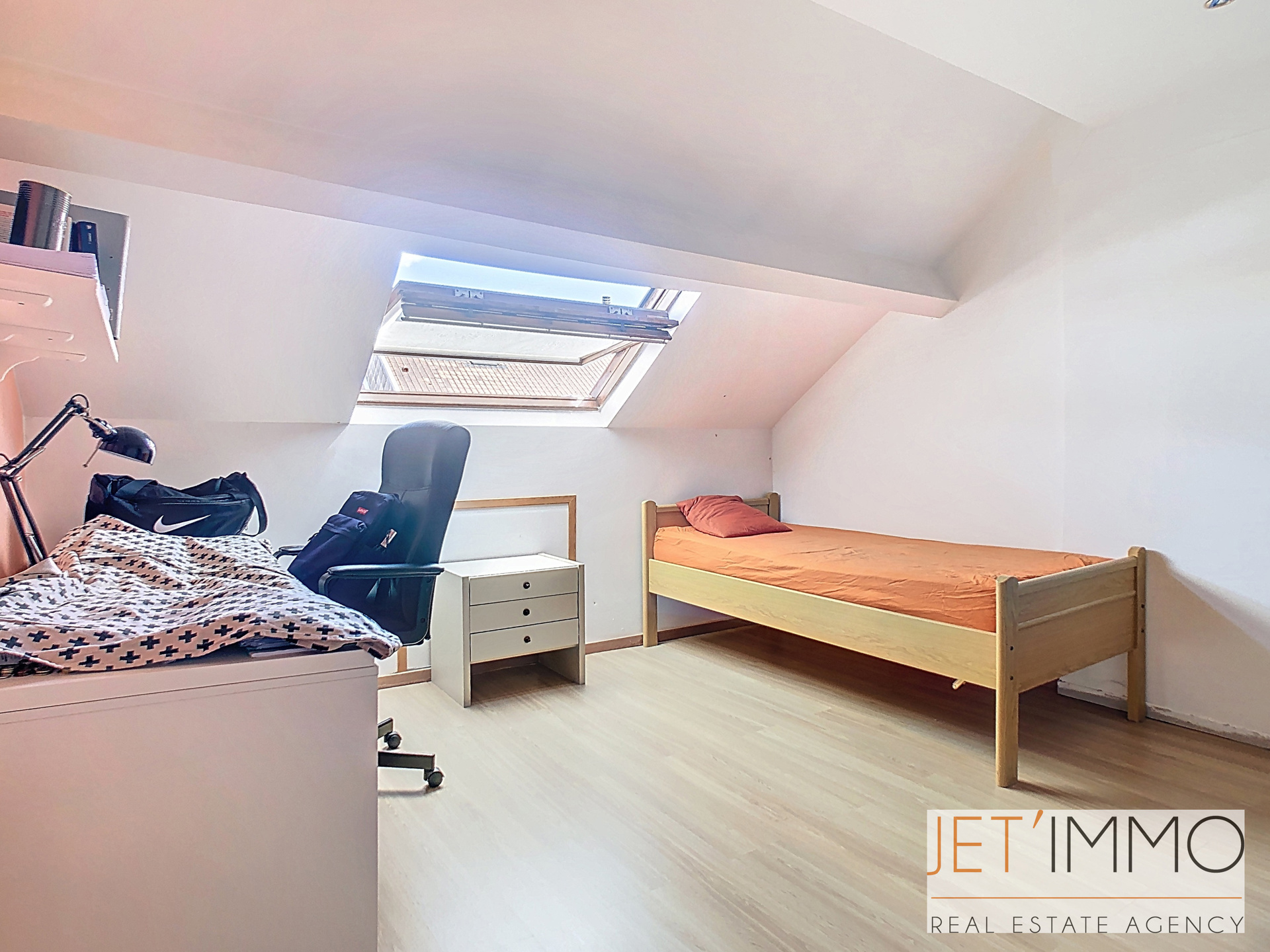 Jet’Immo vous propose à la vente un spacieux appartement duplex comprenant 2 chambres ainsi qu’un grenier entièrement aménagé offrant 3 chambres supplémentaires. Situé dans un quartier calme et proche de toutes commodités, ce bien se compose d’un séjour lumineux, d’une cuisine équipée avec balcon, d’une salle de douche, d’un WC séparé et de deux chambres au niveau principal. À l’étage, le grenier a été transformé en trois chambres confortables, idéales pour une grande famille et d'un espace bureau.